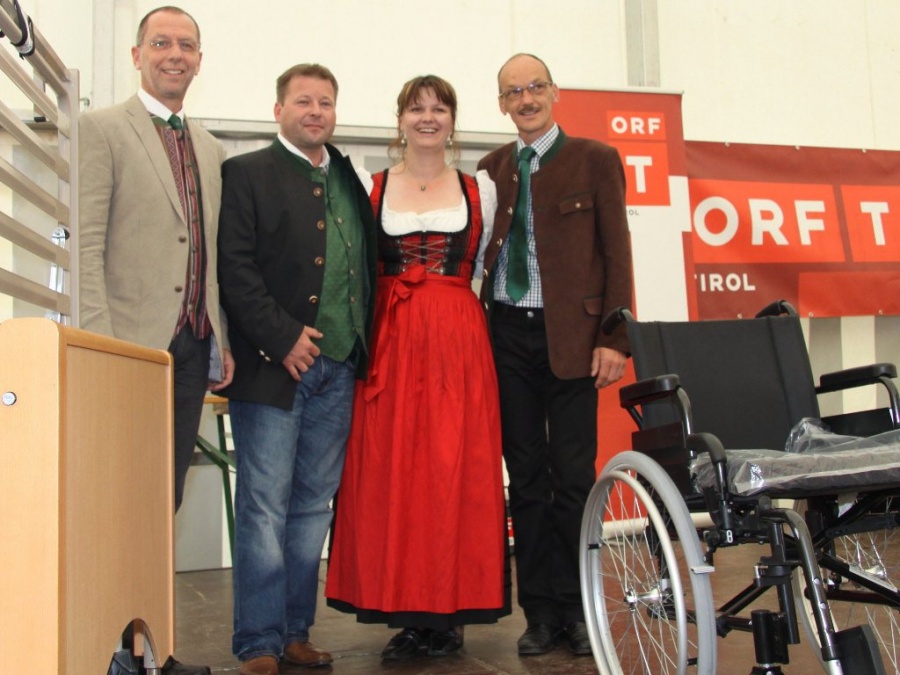 Im von Alexander Weber am Sonntag moderierten ORF-Frühschoppen gastierte die Musikkapelle Mieming, unter der Leitung ihres Kapellmeisters Christian Holzeis mit den „Trenkwaldern“ und den Hitlieferanten „Die jungen Zillertaler“. „Von der Stimmung her, war das vielleicht die beste Frühschoppen-Sendung überhaupt“, sagte ORF-Moderator Weber und das schien nicht nur ein freundlicher Zuruf an die Gastgeber zu sein. Die Familie Duinkerk-Raitmair spendete den Reinerlös dem Sozialsprengel Mieminger Plateau. In Betrieb genommen werden konnten daraufhin ein Rollstuhl und ein Pflegebett. Zwei sehr wertvolle Geschenke, über die sich Sozialsprengel-Obmann und Wildermiemings Bürgermeister Klaus Stocker ebenso freute, wie Bürgermeister Dr. Franz Dengg aus Mieming.