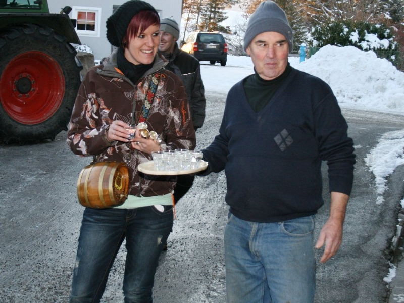 Auf dem Weg zu ihrem jeweiligen Ziel ließen sich unsere Silvesterbläser auf vielerlei Art stärken. Nach dem Auftakt gab’s ein Frühstück: Die neue Bäckerei in Obermieming und der M-Preis in Barwies spendierten Fleichkassemmeln und beim Neuwirt in Untermieming wurden Würstljausen serviert. Für die Partie in Untermieming-Dorf spendierte am Mittag Stiegl-Wirtin Hilde Kranebitter große Platten mit Rippelen, Pizzen wurden im „Romantika“ in Barwies gereicht. Mittagsgastgeber waren auch die Familien Schlierenzauer, Gantioler und Kraler. Abendessen gab es im Gasthaus zur Post, bei der Familie Alber in Zein, im Hotel Schwarz in Obermieming, in der Moosalm, Barwies und Georg Mair (Höhenweg) spendierte zum Abschluss ein gutes Gulasch.