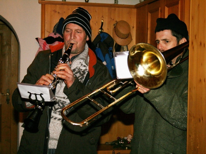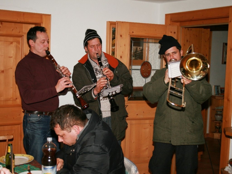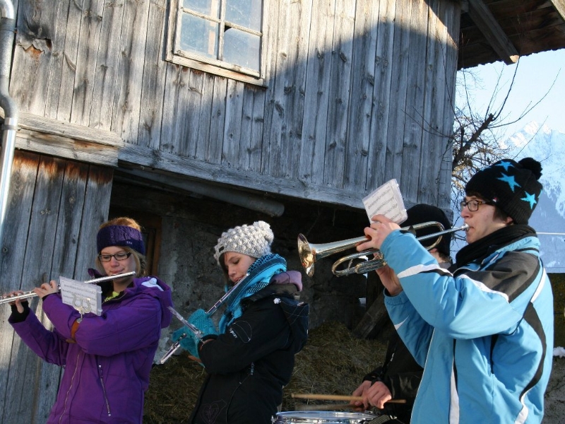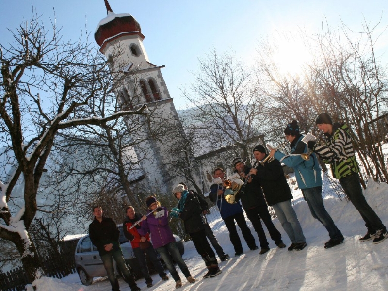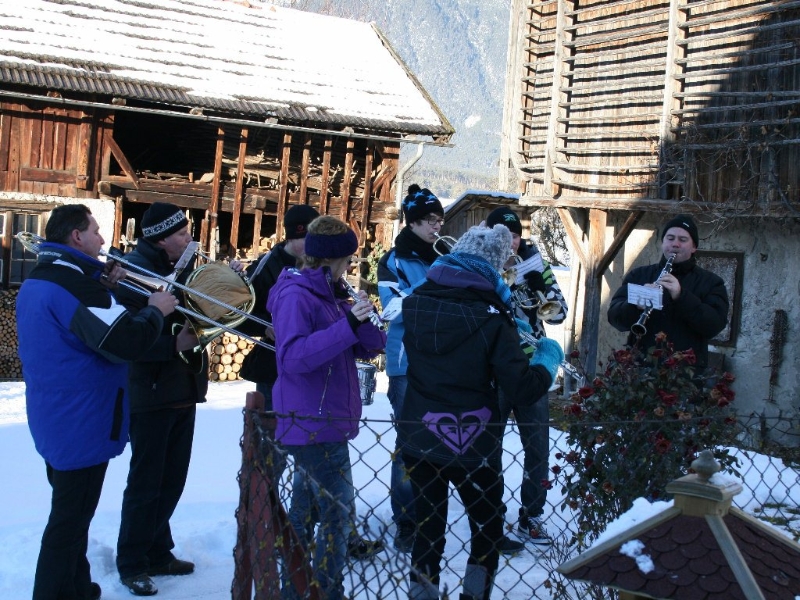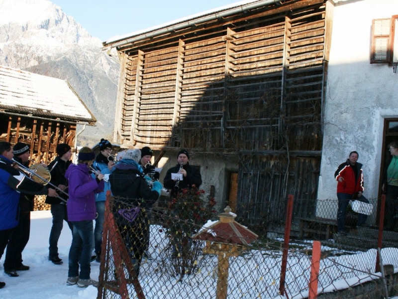 „Die jungen Musikerinnen und Musiker der MK Mieming erinnern sich nicht mehr daran“, erzählt der langgediente Klarinettist Andreas Fischer, „aber vor vielen Jahren kam mal die Idee auf, nur noch an Plätzen in Mieming zu spielen. Die Kräfte sollten gebündelt werden. Daraufhin gab es einen beeindruckenden Protest, quer durch unsere Gemeinde und seither gehen wir am Silvestertag wieder von Haus zu Haus“. Die meisten warten schon auf die Silvesterbläser. Aus langjähriger Erfahrung wissen sie sehr genau, wann sie ungefähr zum eigenen Haus kommen. Jede Spende ist willkommen. Gelegentlich wird ein Schnapserl oder ein Punsch gereicht. „Bis zu 20 sind am Tag zu schaffen“, verrät uns ein Alt-Profi.