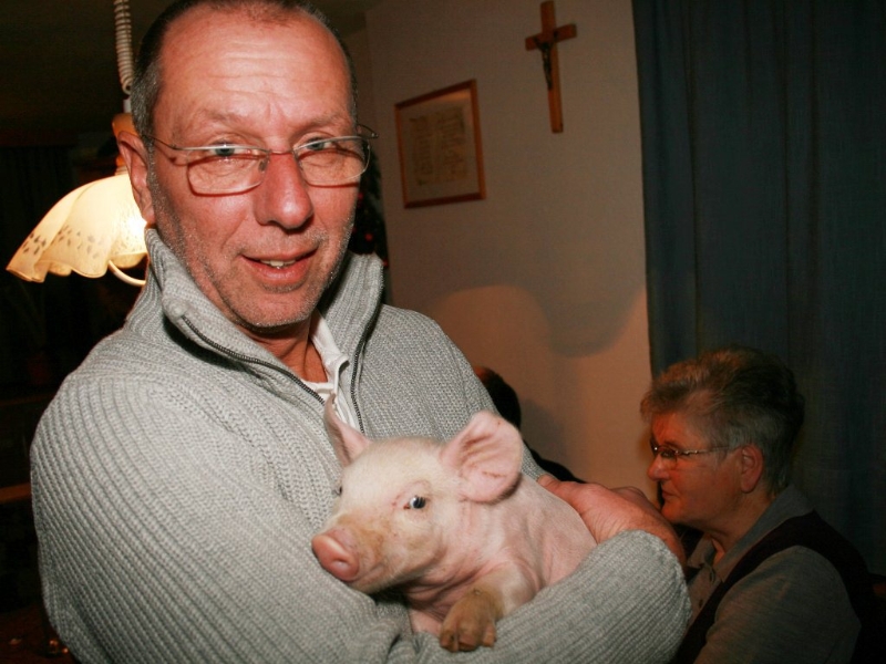 Bürgermeister mit Glücksschwein