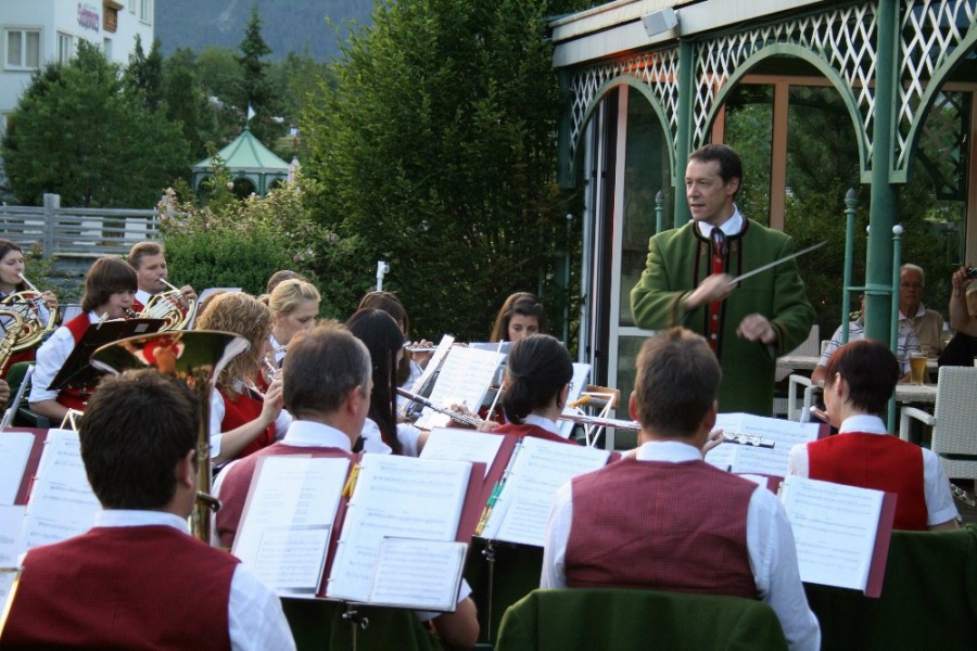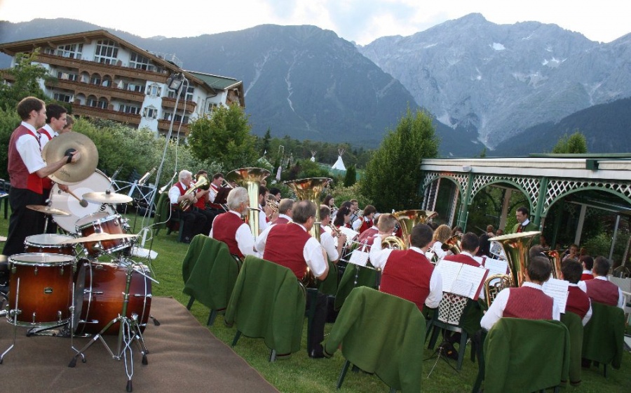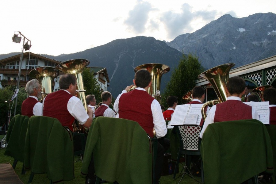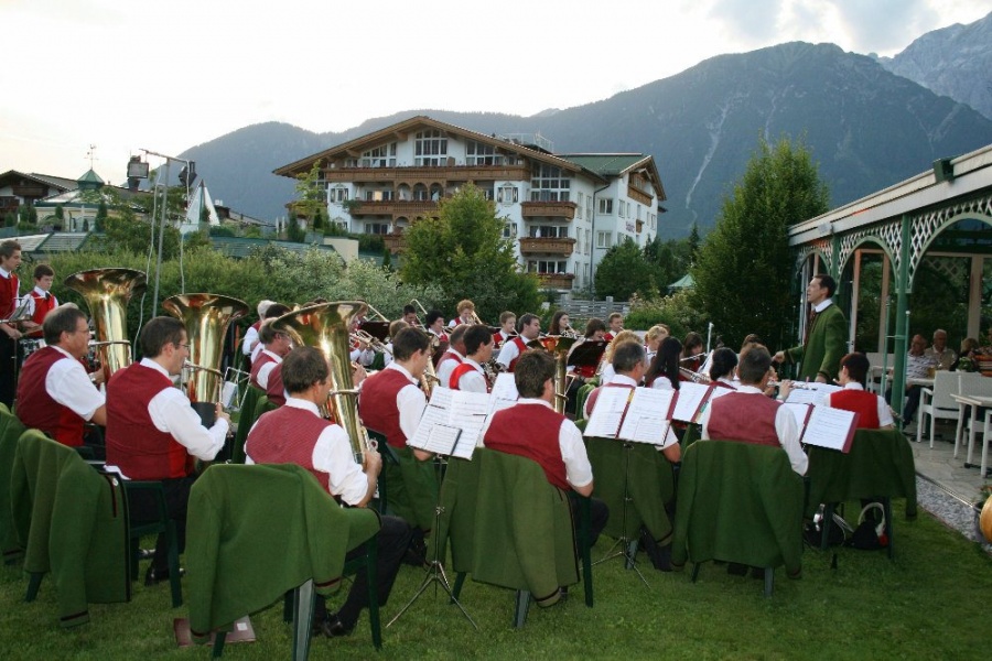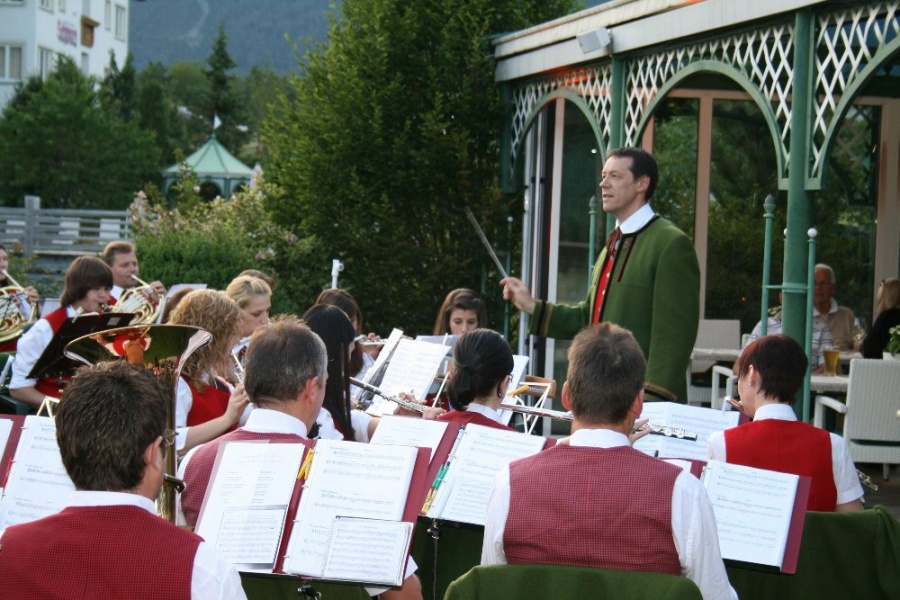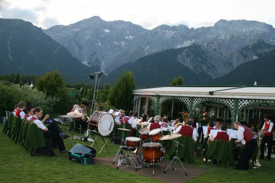Franz Pirktl, Senior-Chef vom Alpenresort Schwarz bedankte sich bei der Musikkapelle Mieming: „Das war für unsere Gäste und für mich ein Abend voller musikalischer Höhepunkte“. Konzertwalzer, Kosakenritt oder Schlager von Connie Francis – die Greenvieh-Gäste freuten sich darüber und besonders über die solistischen Beiträge von Helmut Happ (Flügelhorn) und den drei Saxophonisten Lisa Sannicolo, Monika Hangl und Stefan Pickelmann. Am Rande des Konzertes auf der Sonnenterrasse des Golfrestaurants Greenvieh wurden langjährige Gäste der Gemeinde Mieming vom Tourismusverband Mieminger Plateau geehrt.