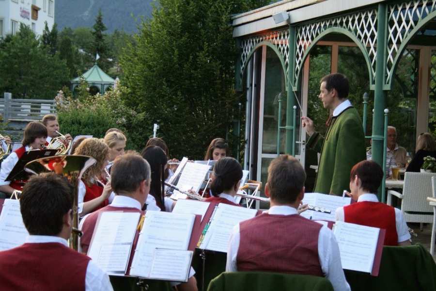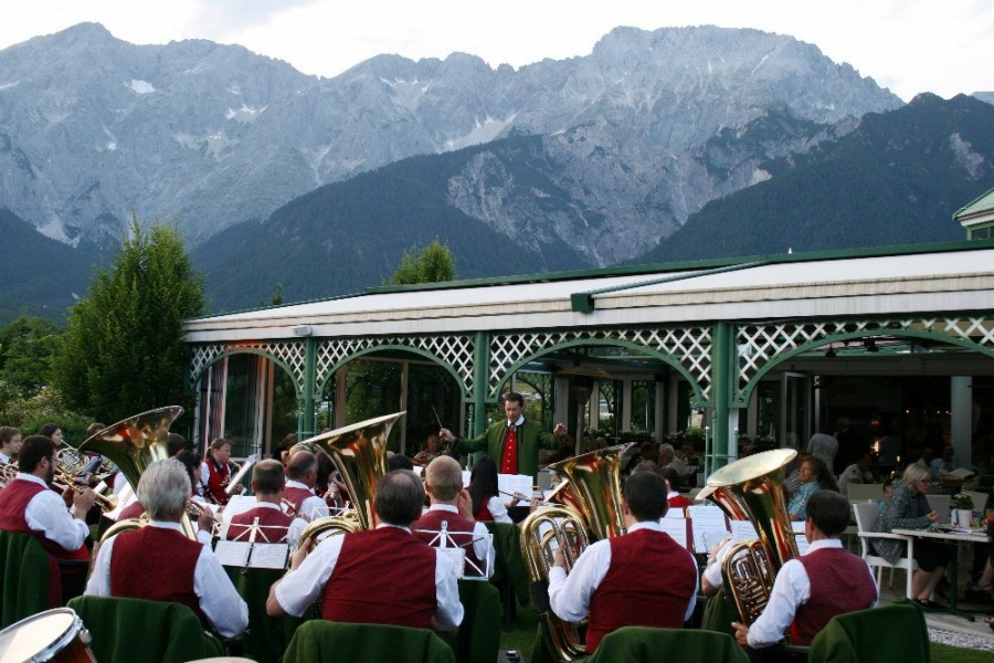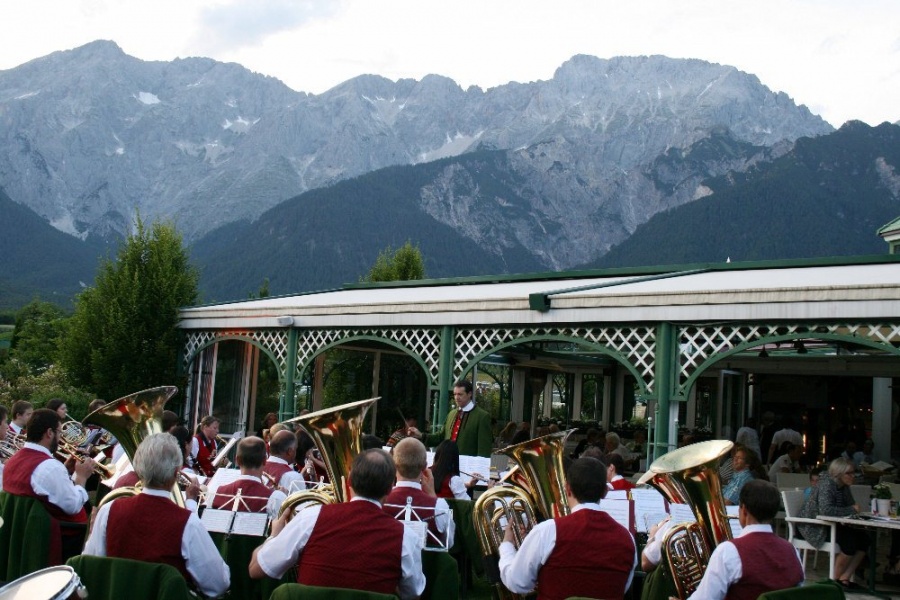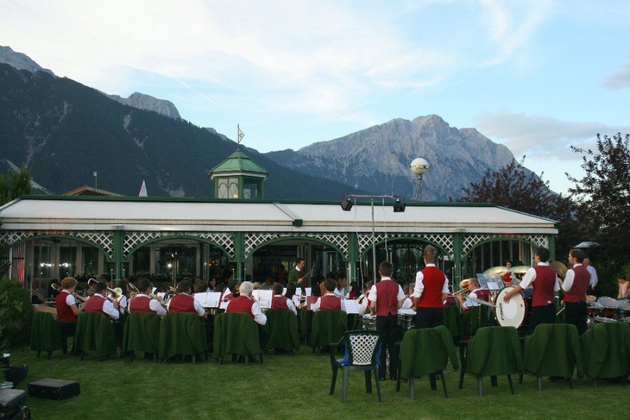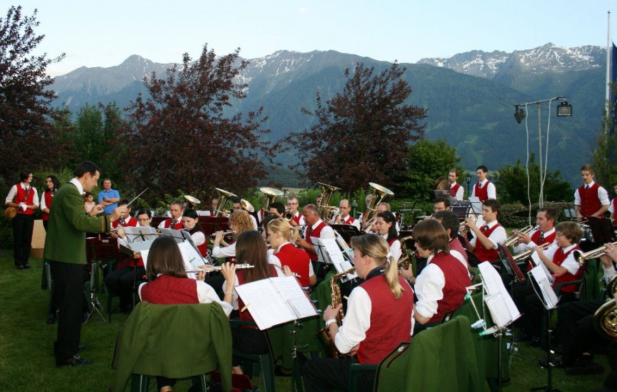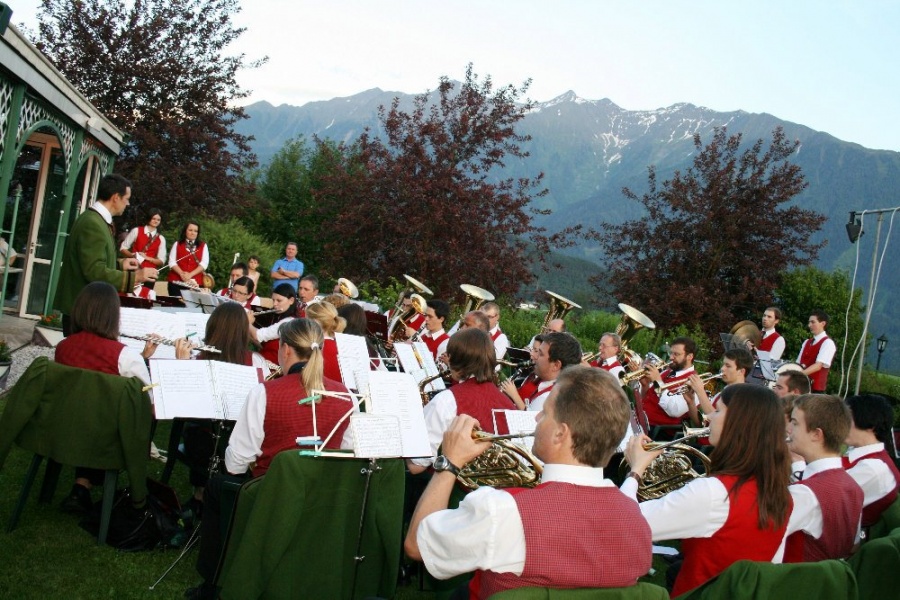 Franz Pirktl, Senior-Chef vom Alpenresort Schwarz bedankte sich bei der Musikkapelle Mieming: „Das war für unsere Gäste und für mich ein Abend voller musikalischer Höhepunkte“. Konzertwalzer, Kosakenritt oder Schlager von Connie Francis – die Greenvieh-Gäste freuten sich darüber und besonders über die solistischen Beiträge von Helmut Happ (Flügelhorn) und den drei Saxophonisten Lisa Sannicolo, Monika Hangl und Stefan Pickelmann. Am Rande des Konzertes auf der Sonnenterrasse des Golfrestaurants Greenvieh wurden langjährige Gäste der Gemeinde Mieming vom Tourismusverband Mieminger Plateau geehrt.