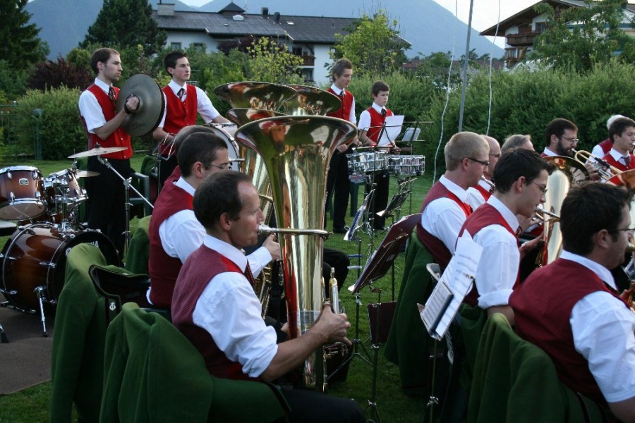 Das Sommerkonzert am Dienstag, dem 21. Juni 2011, swingte, groovte und verbreitete Ferienlaune. Die Musikkapelle Mieming präsentierte „ein Mix für Jung und Junggebliebene“ und das gleich zum Einstieg mit dem Marsch „Schneidig vor“.