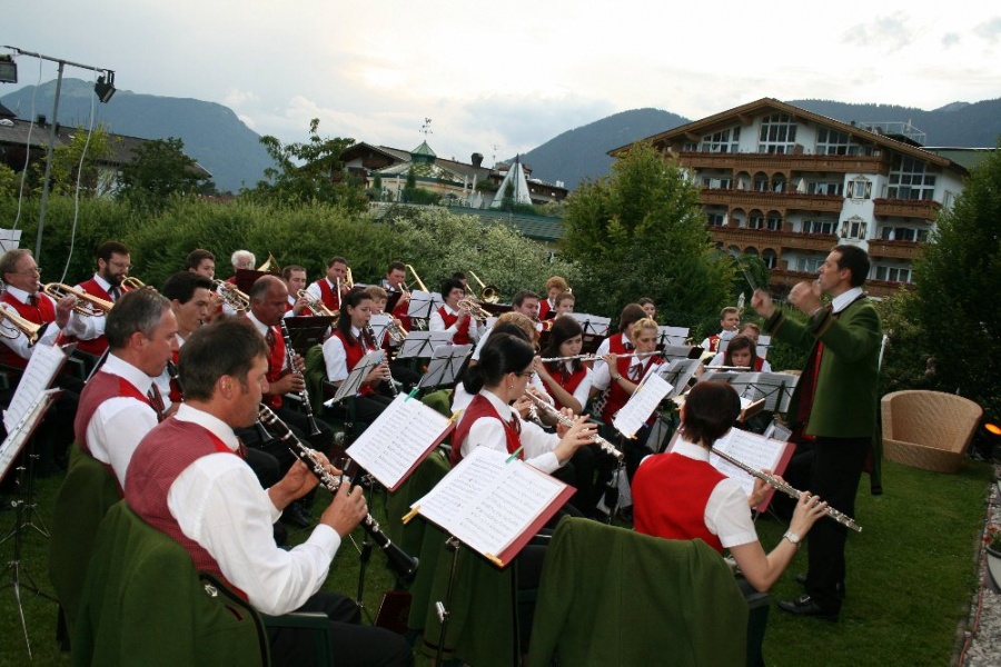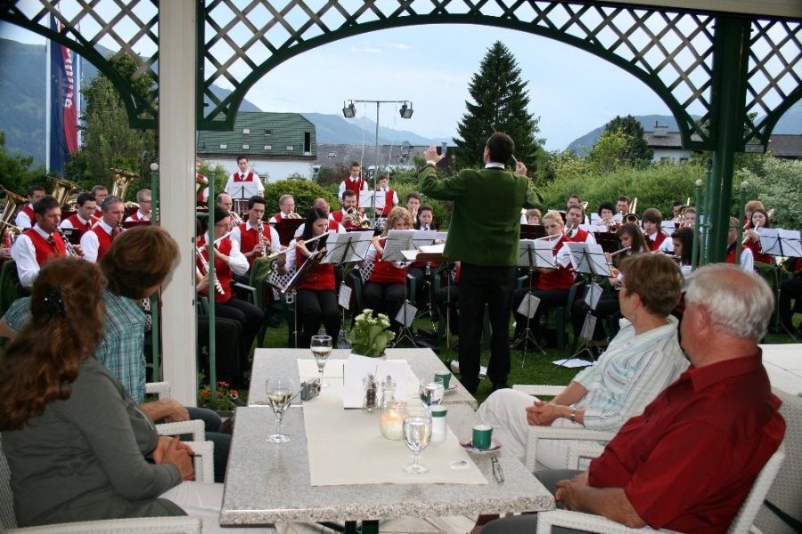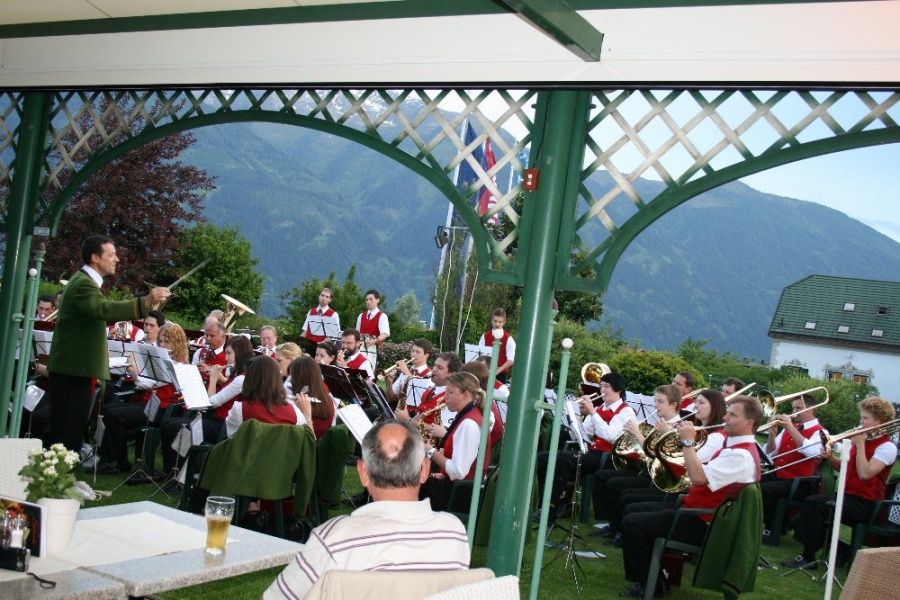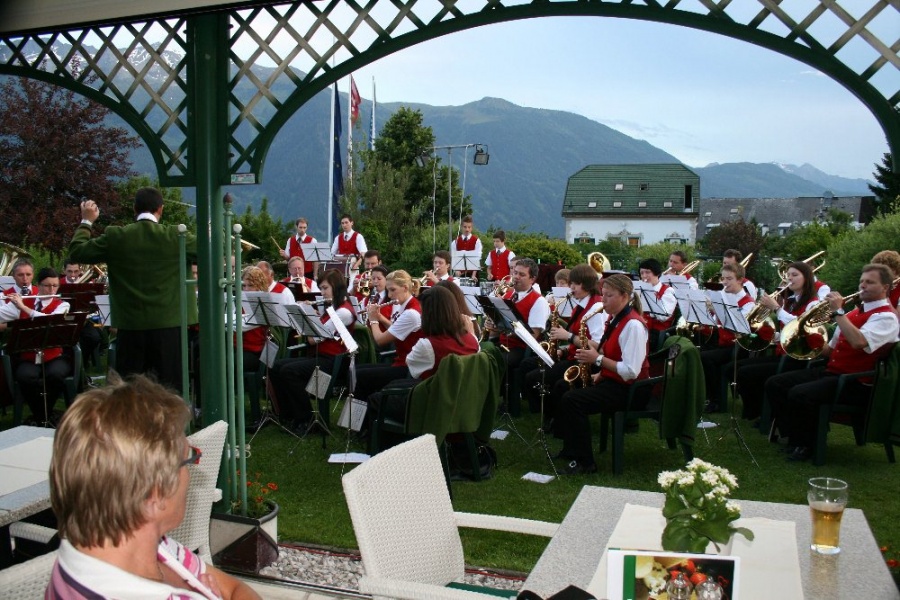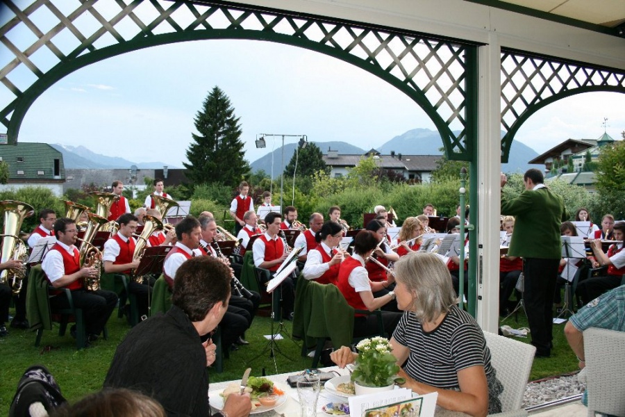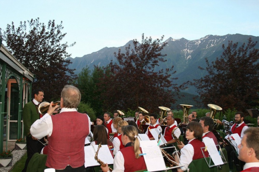 Franz Pirktl, Senior-Chef vom Alpenresort Schwarz bedankte sich bei der Musikkapelle Mieming: „Das war für unsere Gäste und für mich ein Abend voller musikalischer Höhepunkte“. Konzertwalzer, Kosakenritt oder Schlager von Connie Francis – die Greenvieh-Gäste freuten sich darüber und besonders über die solistischen Beiträge von Helmut Happ (Flügelhorn) und den drei Saxophonisten Lisa Sannicolo, Monika Hangl und Stefan Pickelmann. Am Rande des Konzertes auf der Sonnenterrasse des Golfrestaurants Greenvieh wurden langjährige Gäste der Gemeinde Mieming vom Tourismusverband Mieminger Plateau geehrt.