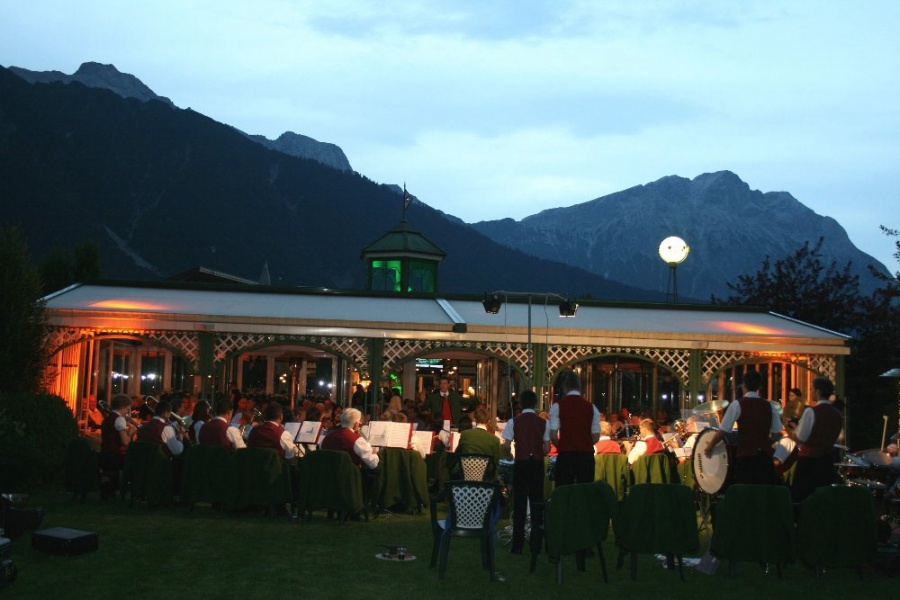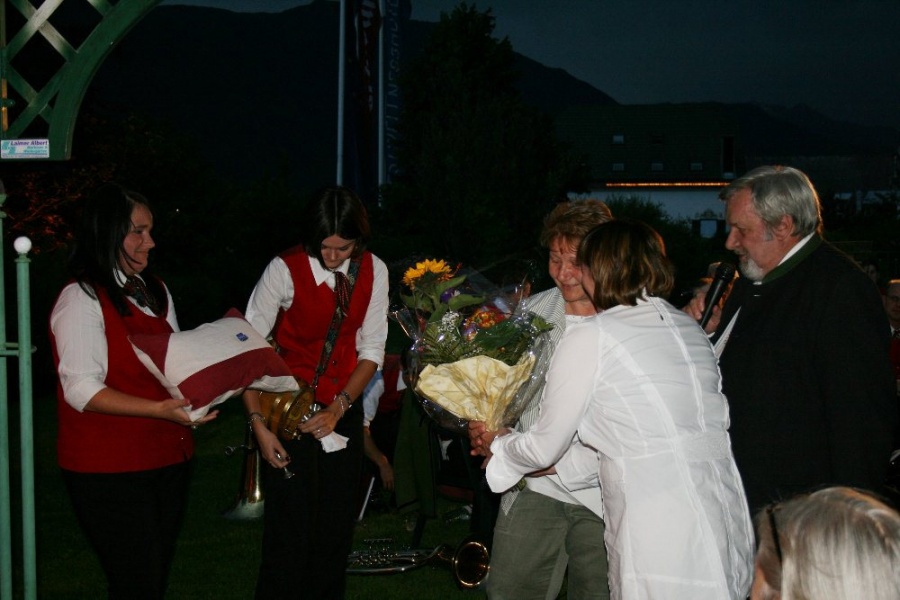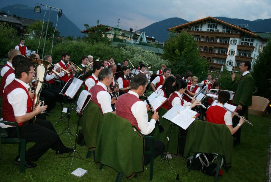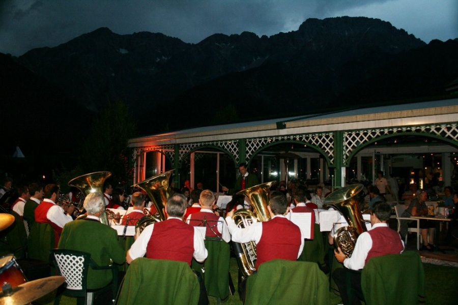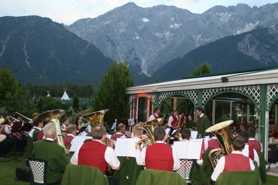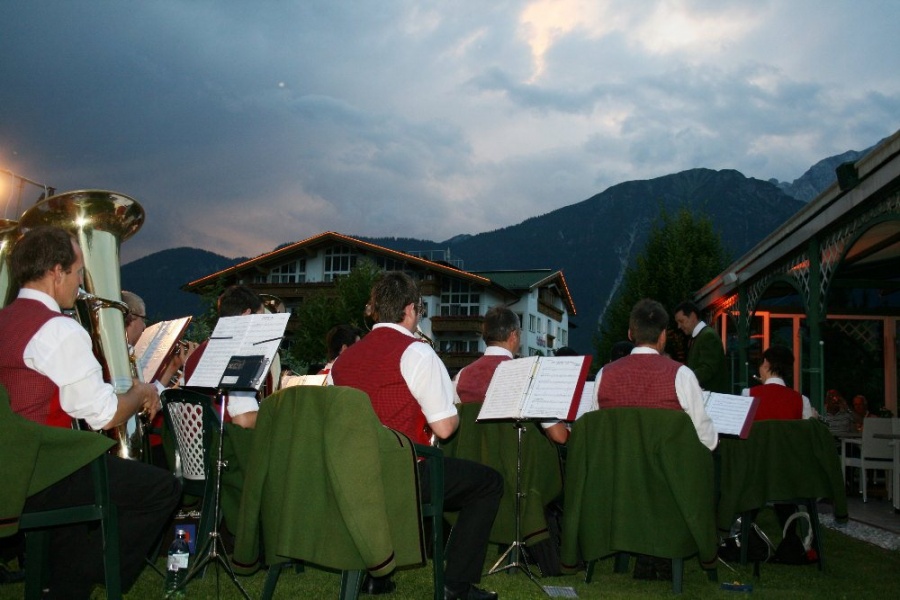 Franz Pirktl, Senior-Chef vom Alpenresort Schwarz bedankte sich bei der Musikkapelle Mieming: „Das war für unsere Gäste und für mich ein Abend voller musikalischer Höhepunkte“. Konzertwalzer, Kosakenritt oder Schlager von Connie Francis – die Greenvieh-Gäste freuten sich darüber und besonders über die solistischen Beiträge von Helmut Happ (Flügelhorn) und den drei Saxophonisten Lisa Sannicolo, Monika Hangl und Stefan Pickelmann. Am Rande des Konzertes auf der Sonnenterrasse des Golfrestaurants Greenvieh wurden langjährige Gäste der Gemeinde Mieming vom Tourismusverband Mieminger Plateau geehrt.