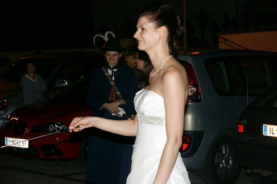 Bevor die MK Mieming der Einladung des Brautpaares zum Abendessen in den Wildermieminger Gemeindesaal folgte, dirigierte die Braut noch einen Marsch.