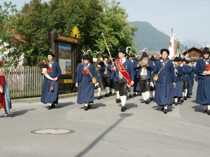 Landfrauen, Landjugend, Bäuerinnen und Bauern kümmerten sich um das leibliche Wohl beim Dorffest auf dem Kirchplatzl in Untermieming. Dort gab es u.a. die ersten Früh-Erdäpfel von Post Hannes, die allen geschmeckt haben. Es spielte die Musikkapelle unter der Leitung von Markus Aichner. Zu begeistern wussten bei der Musikkapelle Mieming als Solist der Klarinettist Stefan Happ mit “Csárdás” von Vittorio Monti und der Trompeter Georg Mair von den Mieminger Musikanten mit “Spiel mir das Lied vom Tod” von Ennio Morricone. Am Nachmittag spielten die Mieminger Musikanten zünftige Blasmusik bis zum Ausklang des wunderschönen Festes. Unter den Gästen sahen wir u.a. Bürgermeister Dr. Franz Dengg, Vize-Bürgermeister Klaus Scharmer, die Altbürgermeister Karl Spielmann, HR Dr. Otto Thaler und Dr. Siegfried Gapp, sowie viele Gemeinderäte und Vereinsrepräsentanten.