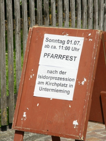 Seit Mitte des 17. Jahrhunderts wird in Mieming das Isidori-Fest gefeiert. Der Heilige Isidor ist der Schutzheilige unserer Bauern und damit ist das kirchlich-bäuerliche Fest so etwas wie das Hohe Fest der Gemeinde Mieming. Das Isidori-Fest wird traditionell am 1. Sonntag im Monat gefeiert, heuer am Sonntag, dem 1. Juli 2012. Pfarrer Paulinus Okachi leitete die Prozession und Messe. In der Messe ging er auf die Geschichte des Isidori-Festes ein.