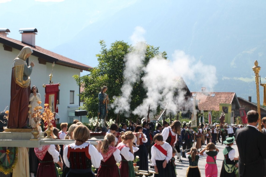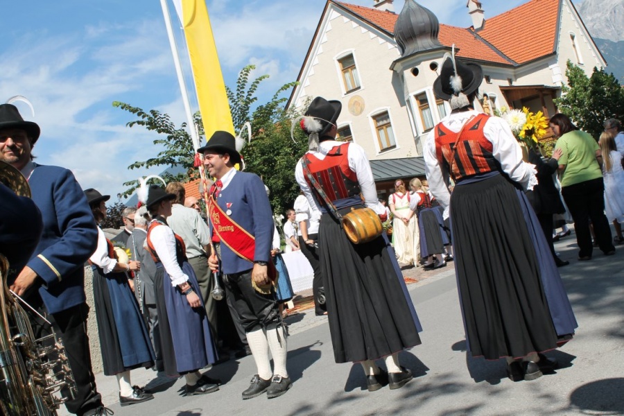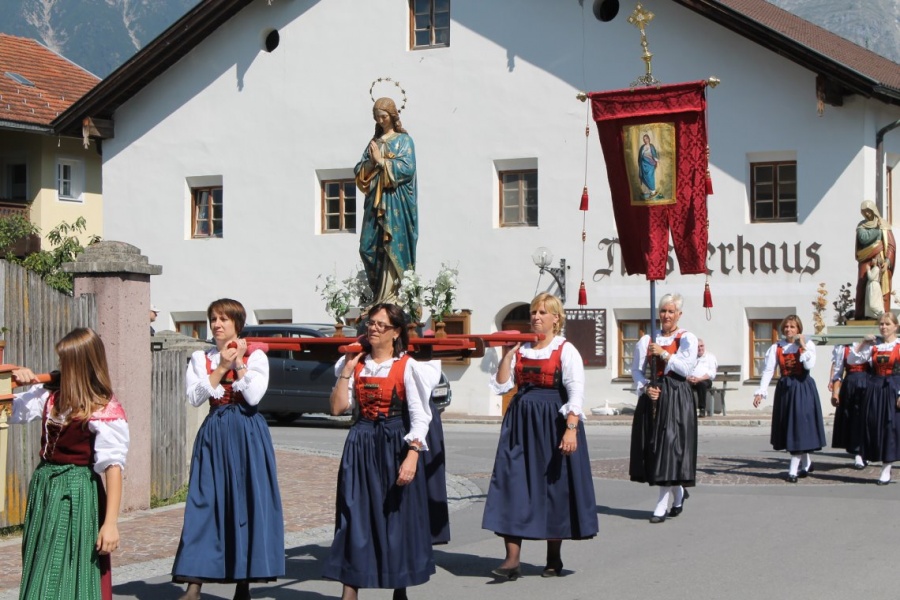 Das war ein Landfeiertag wie wir ihn in Mieming mögen und oft erleben. So schön als wäre jeder von uns das allererste Mal dabei gewesen. Die Frauen und Madln mit ihren farbenfrohen und kostbaren Trachten, die Männer und Burschen ebenso festlich gewandet. Unsere Landfrauen trugen Körbe mit Kräuterbündeln, die geweiht werden wollten. Die geweihten Kräuter sollen jedes Unheil von den Gläubigen fernhalten.