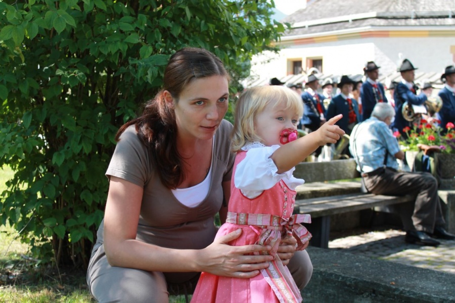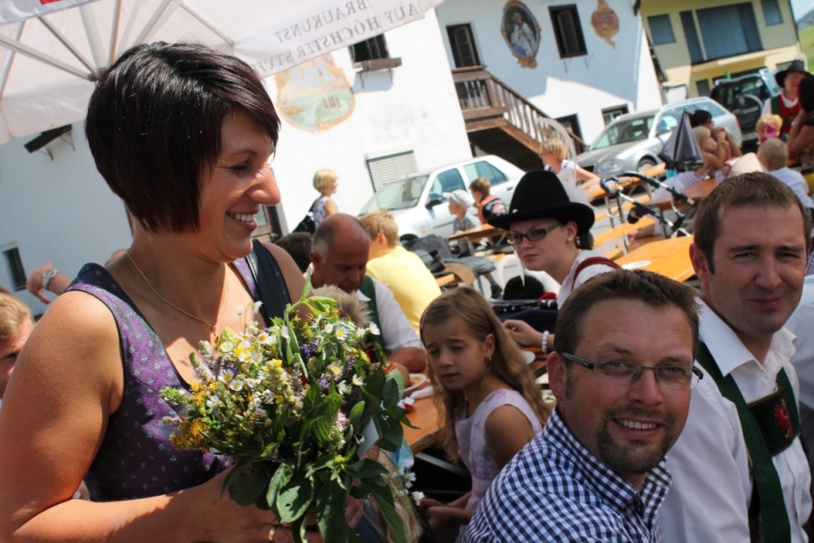 Danach versammelte sich die Gemeinde zur Prozession. Im Anschluss an die Prozession lud die Familie Kranebitter-Oberdanner zum Frühschoppen beim Gasthof Stiegl ein.