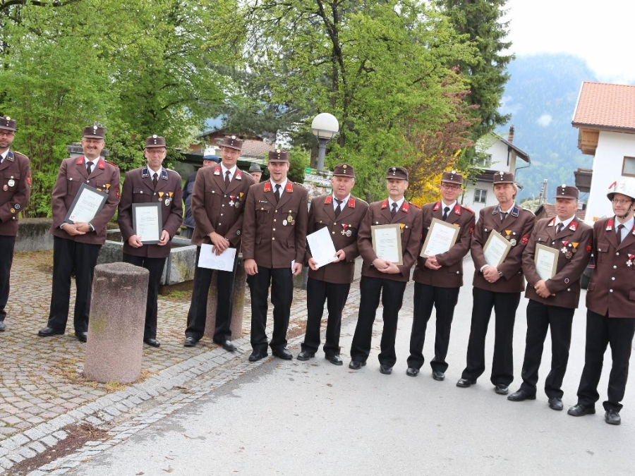 Im Anschluss an die Floriani-Messe wurden von Feuerwehr-Kommandant und Vize-Bürgermeister Klaus Scharmer für ihre 25jährige Mitgliedschaft geehrt: Larcher Alois, Pienz Adi, Ringer Hans-Christian und Zankai Andreas. Für 40 Jahre Dengg Franz und Gastl Reinhard. Für 60 Jahre Mitgliedschaft in der Feuerwehr Larcher David, Schaber Roman und Soraperra Alois. Mit Verdienstzeichen des Bezirksfeuerwehrverband Imst wurden geehrt, in Bronze: Schneider Peter, in Silber: Scharmer Klaus und Larcher Martin.