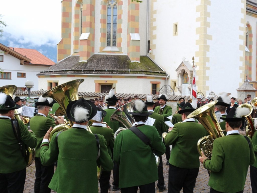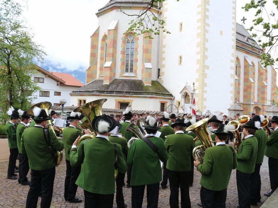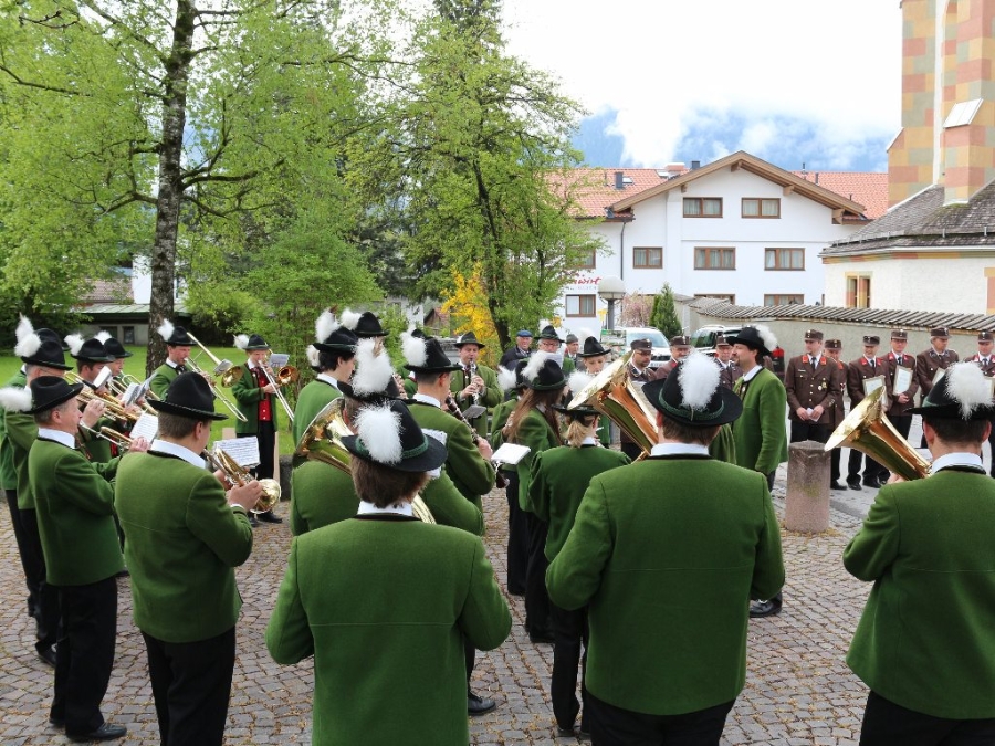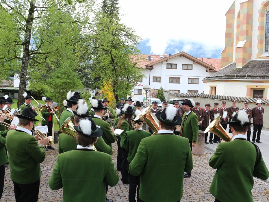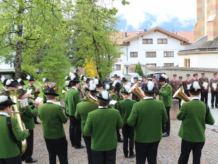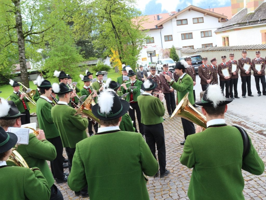 Nach der Floriani-Messe, die von der Musikkapelle Mieming, unter der Leitung von Kapellmeister Markus Aichner feierlich umrahmt wurde, wurden auf dem Kirchplatzl die Ehrungen vollzogen. Dazu spielte wiederum die Musikkapelle Mieming.