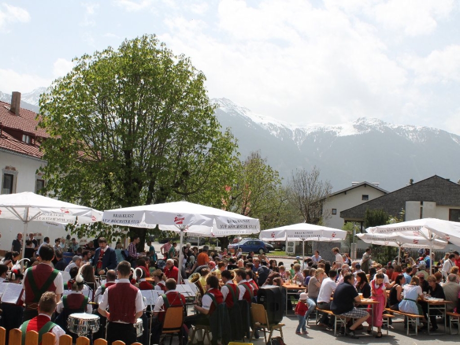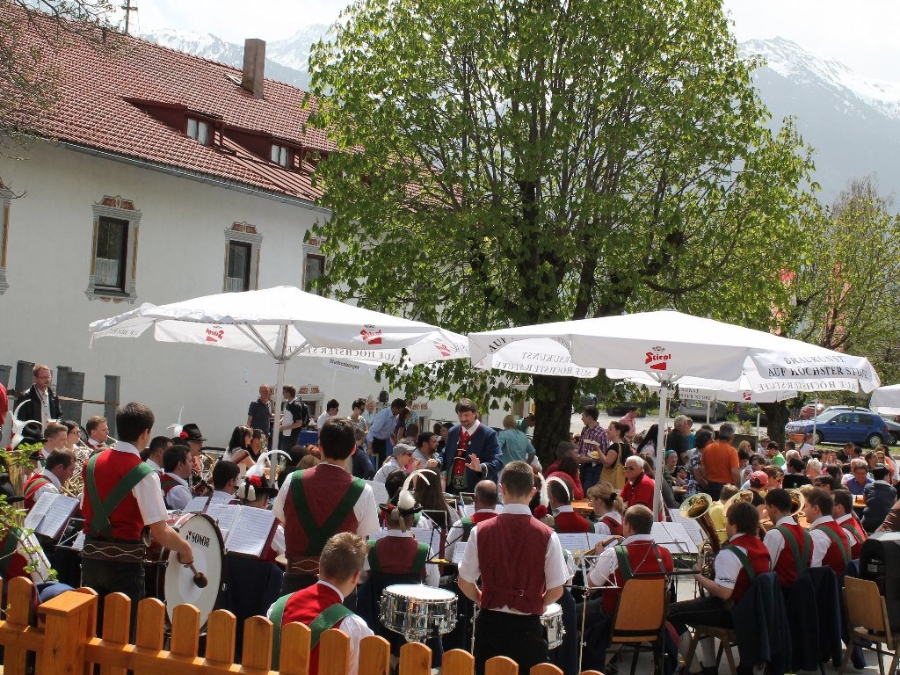 Zur Tradition des Mieminger Maifestes gehört inzwischen auch das Frühschoppen-Konzert der Musikkapelle Mieming. Für Kappellmeister Markus Aichner war es das 2. Maifest in dieser Funktion. Markus Aichner ließ die Dorfzeitung über seinen Notenbuch schauen. Die Musikkapelle spielte u.a. Den „Floriana-Marsch“, die „Böhmische Kirmes“ und die „Musikantenfest-Polka“ von Arnold Breitfuss, unserem Bezirksehrenkapellmeister. Zum 18. Geburtstag der Flötistin Stephanie Schlierenzauer gratulierte die Musikkapelle mit „Jubiläum 2000“ unter dem Decknamen „Jubiläum 1800“. Die „Südbömische Polka“ wurde für „Mieming-Online“ gespielt, ansonsten erinnern wir uns gerne an „The Liberty Bell-Marsch“, den Marsch „Mein Heimatland“, die „Fuchsgraben-Polka“ und „Wir Musikanten“. Alles Blasmusik-Highlights. Nach der Musikkapelle Mieming spielten die Stiegl-Buam, unter Markus Kranebitter, flotte Tanzmusik, bis zum späten Nachmittag.