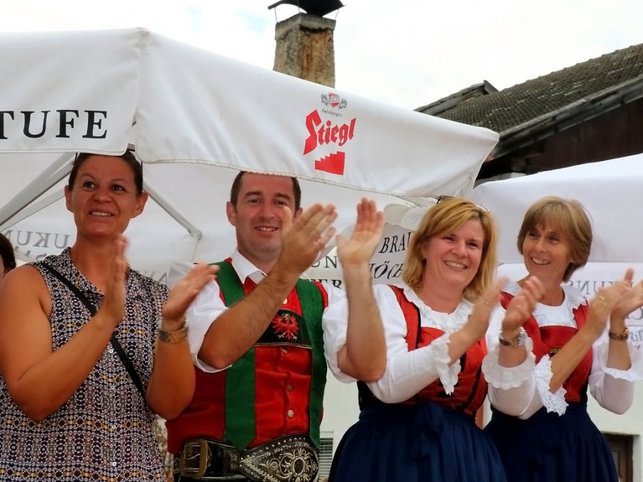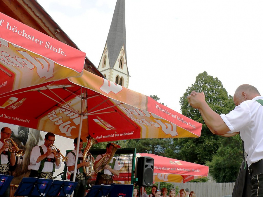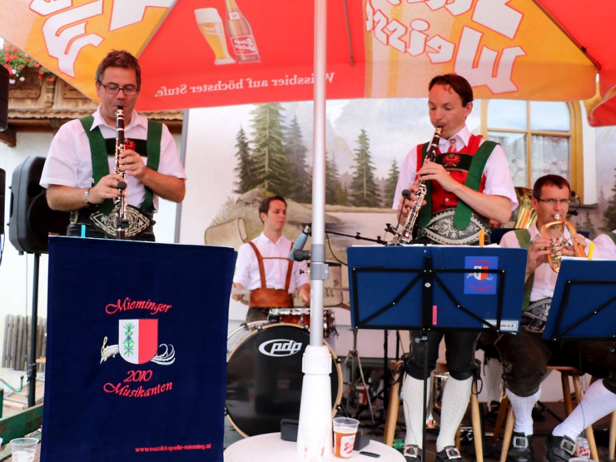 Im Anschluss an die Prozession luden die Familien Kranebitter-Oberdanner zum Frühschoppen in den Biergarten am Parkplatz vom Gasthof Stiegl ein. Dazu spielten die sehr guten Mieminger Musikanten u.a. Böhmische Blasmusik. [mehr → Mieming.online ]