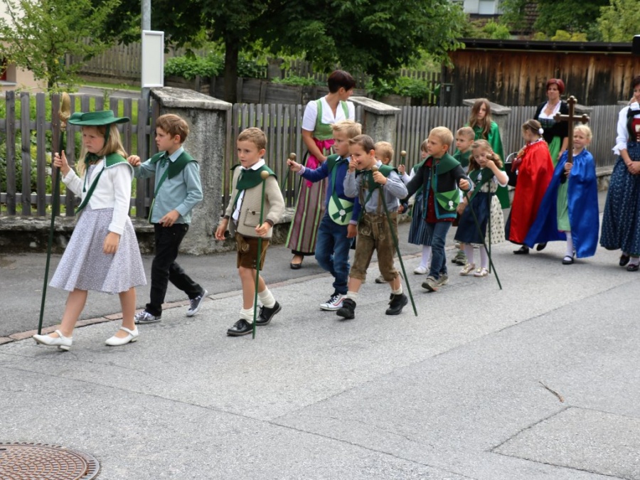 Die beiden Engel auf dem Farrgele beim Hl. Isidor waren heuer Raphael Wachter und Alexander Falch. Elias Zoller war der Vorausengel.