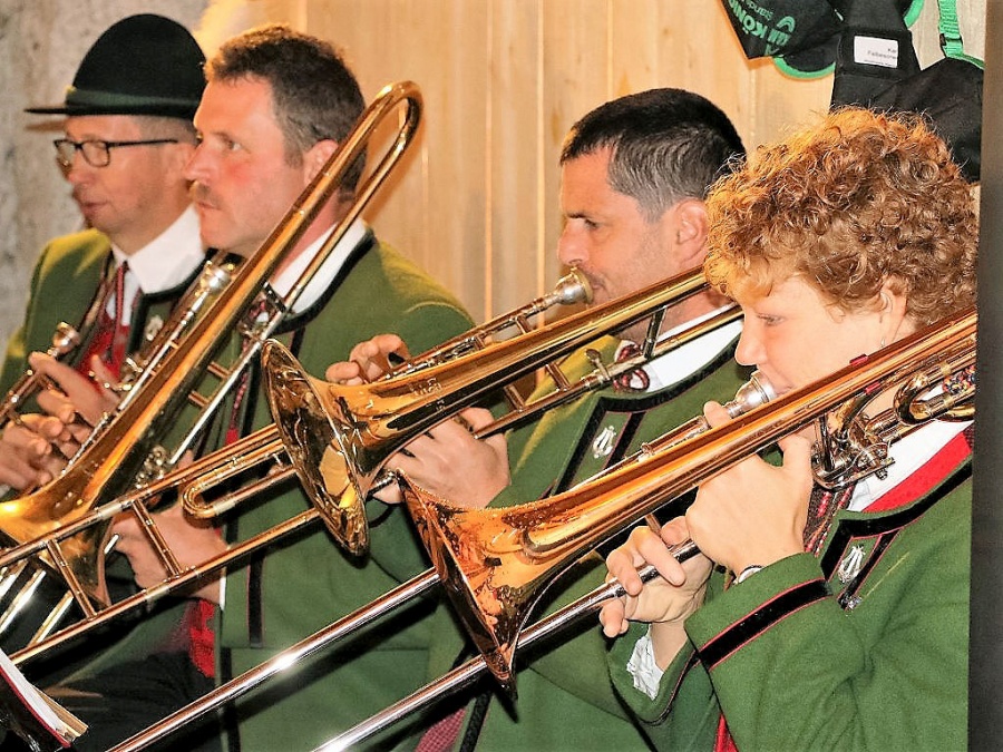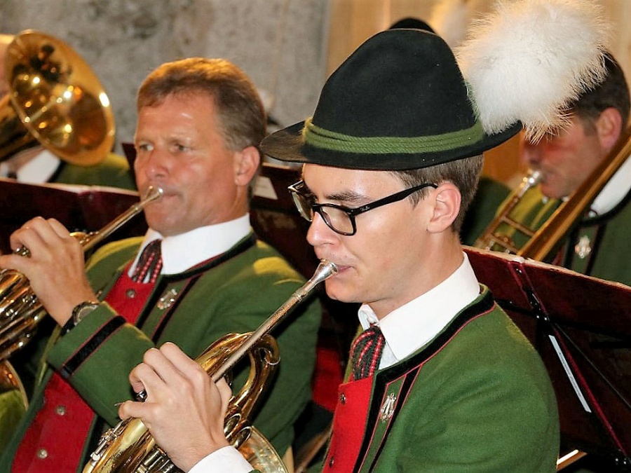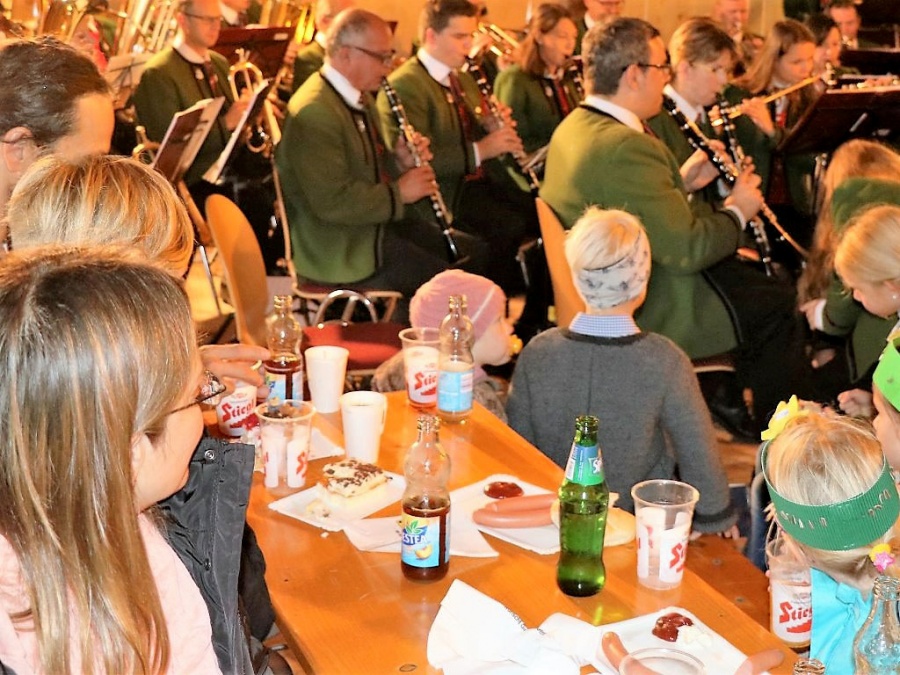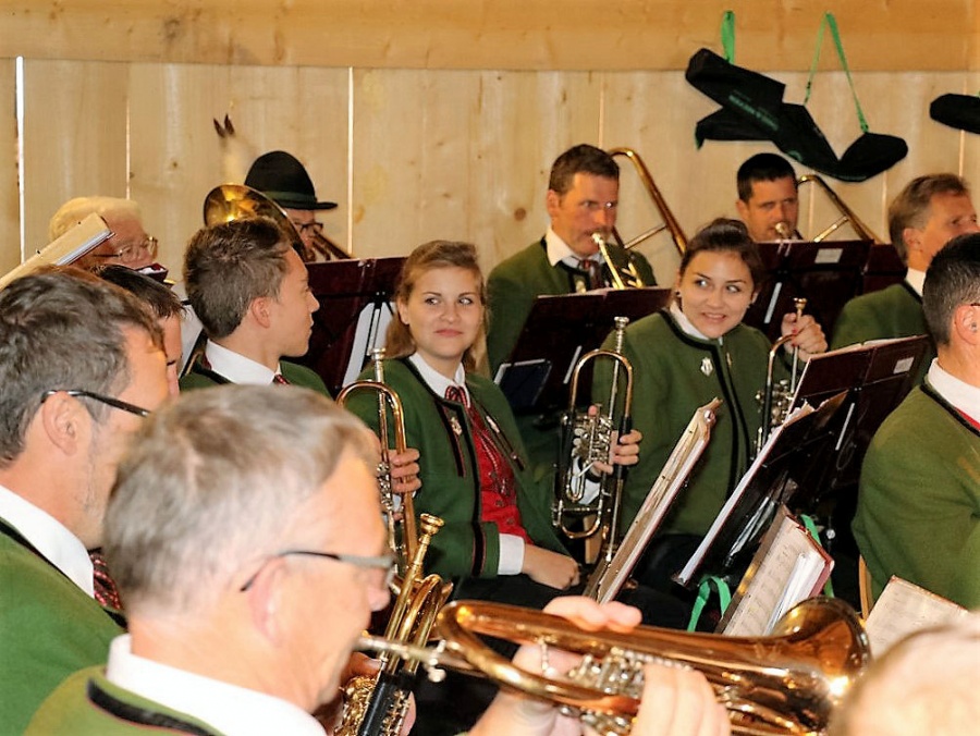 Die Musikkapelle (Ltg. Kapellmeister Sebastian Kluckner) spielte zum Auftakt des Frühschoppenkonzertes mit Blick auf die Wetterlage „Raindrops keep fallin‘ on my head“. Ein Klassiker aus der Feder des Komponisten Burt Bacharach. Moderation: Georg Spielmann.