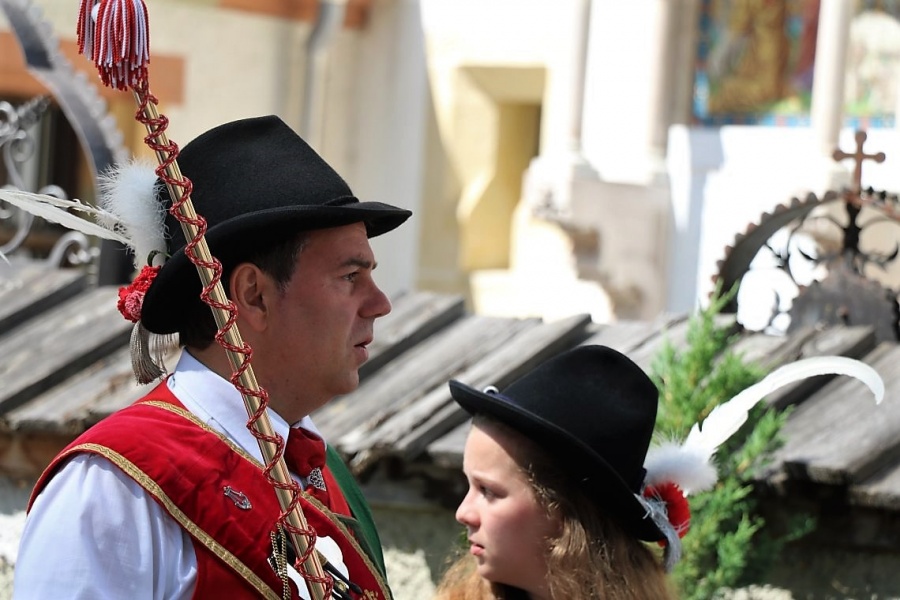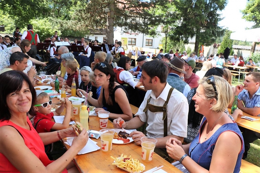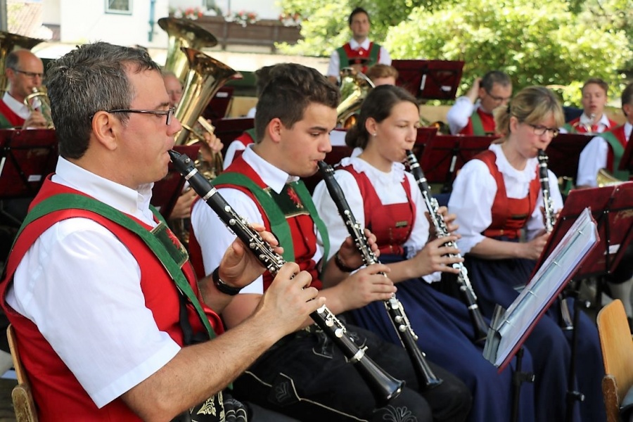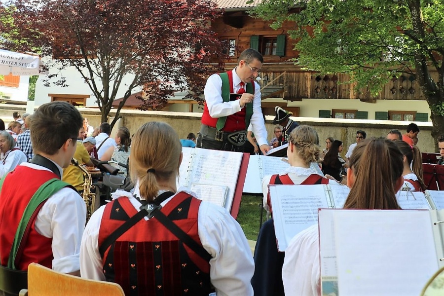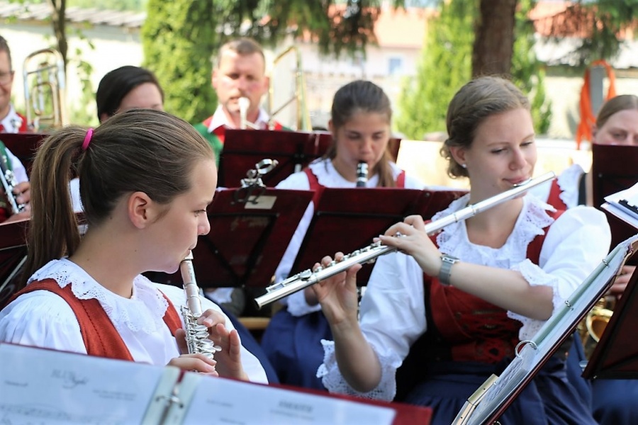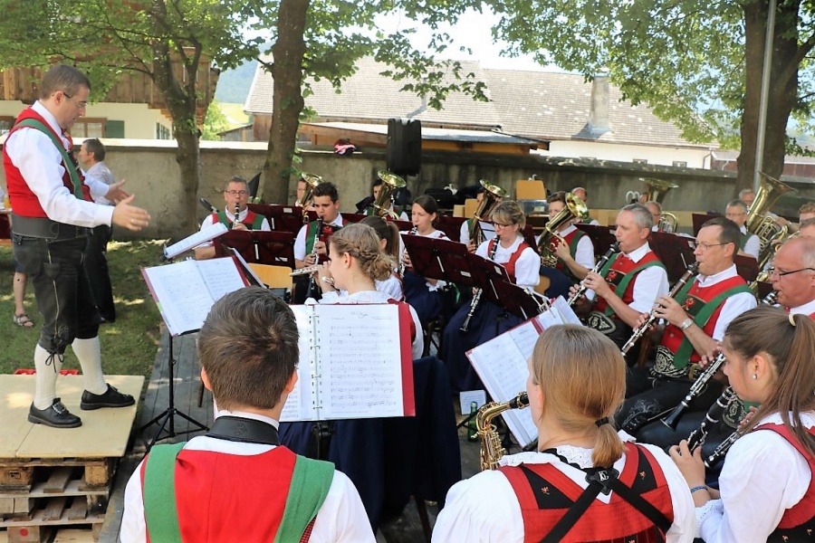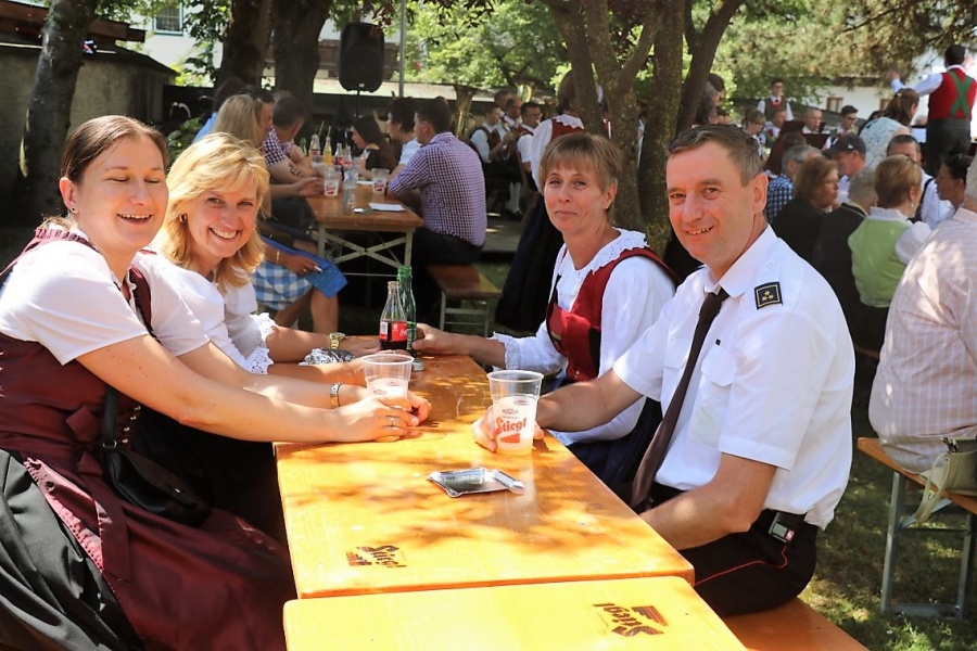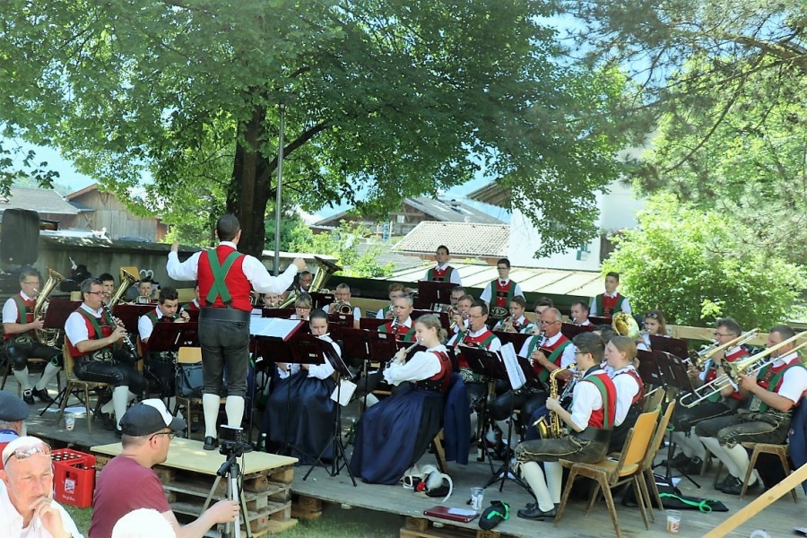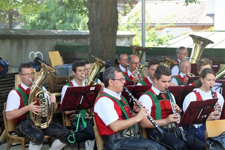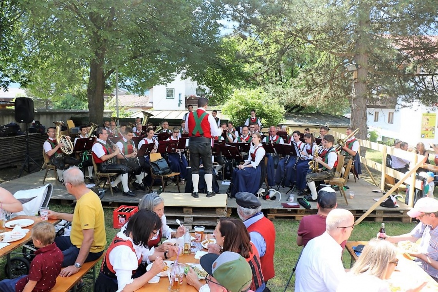 Nach dem Frühschoppenkonzert mit der Musikkapelle Mieming, spielte Marco Spiegl mit seiner steirischen Harmonika „Eine Insel unter Palmen“ und andere Hits seines vielfachen Repertoires. Der Schlagersänger wurde dabei von seinem eigens angereisten Fan-Club frenetisch unterstützt.