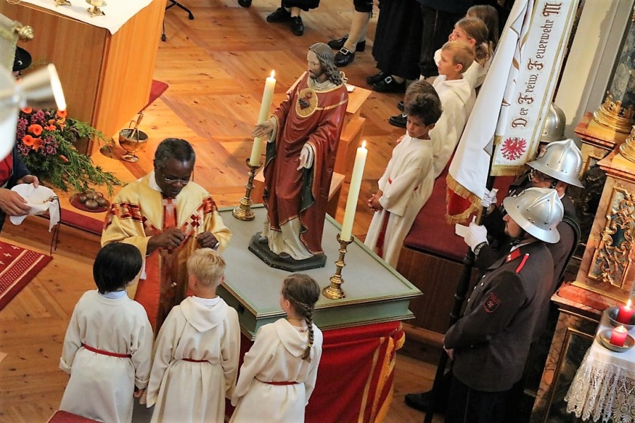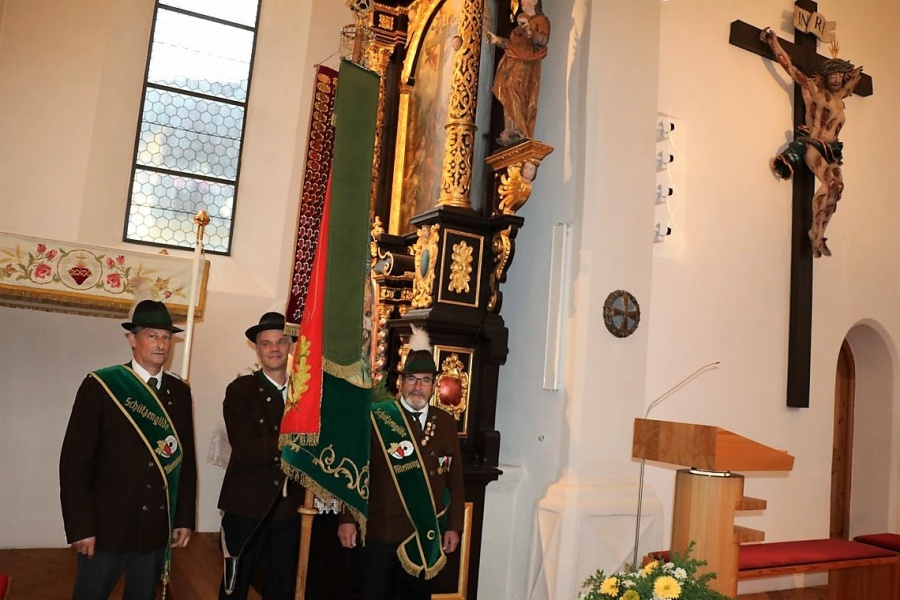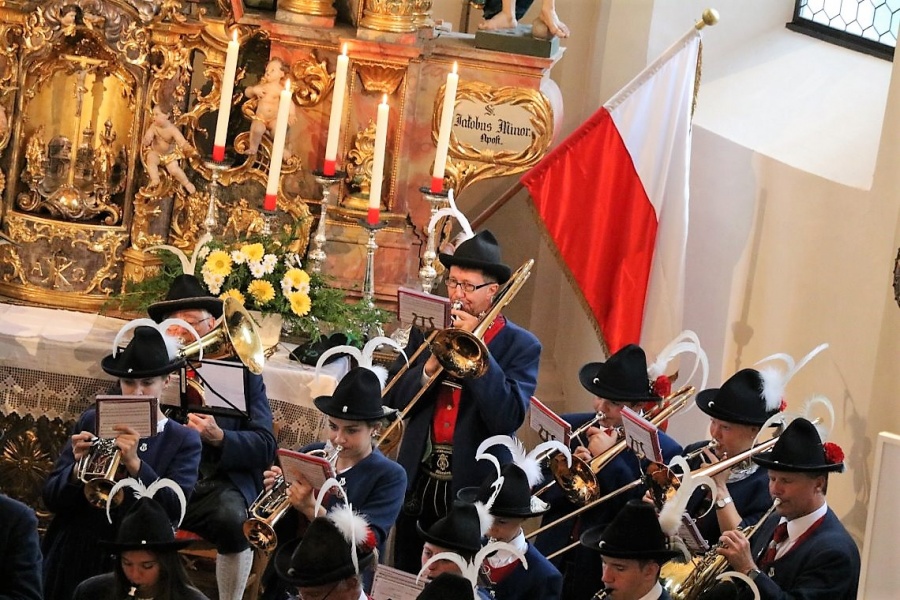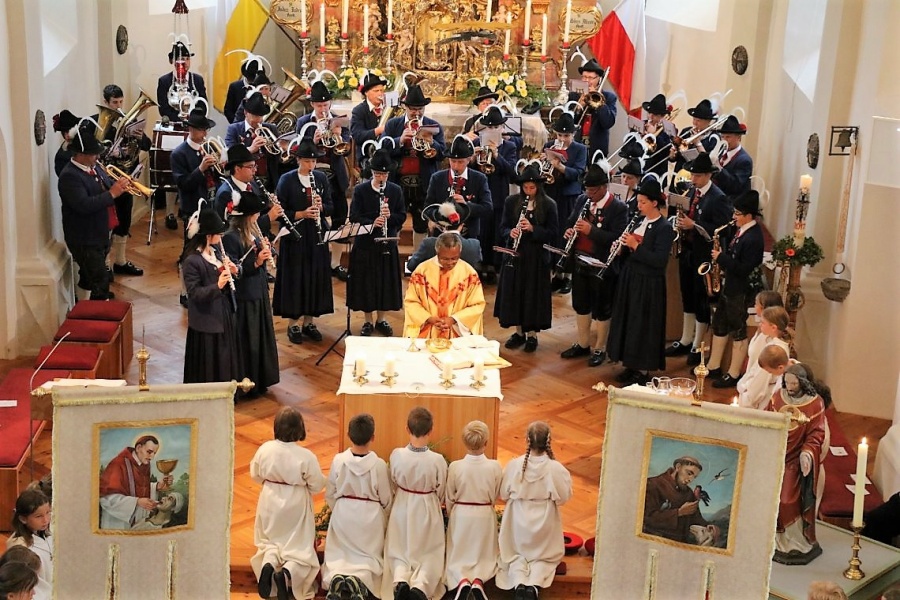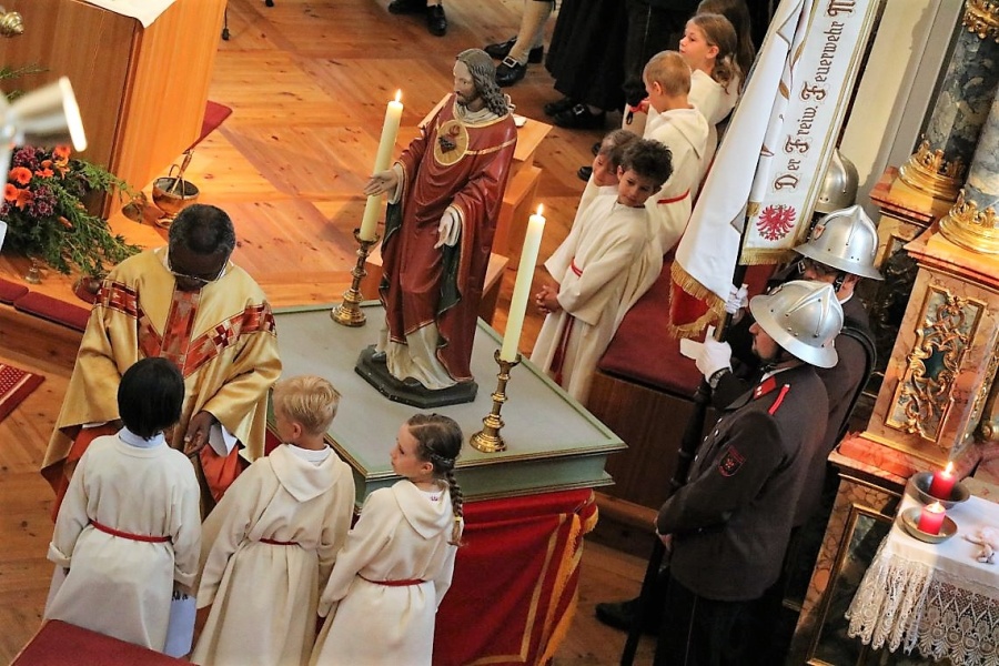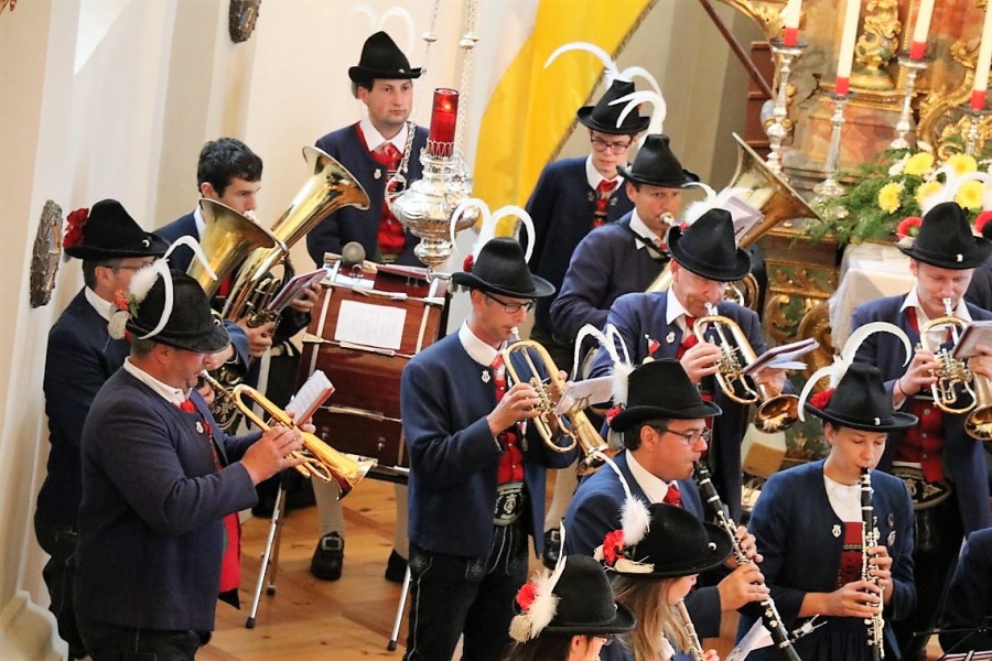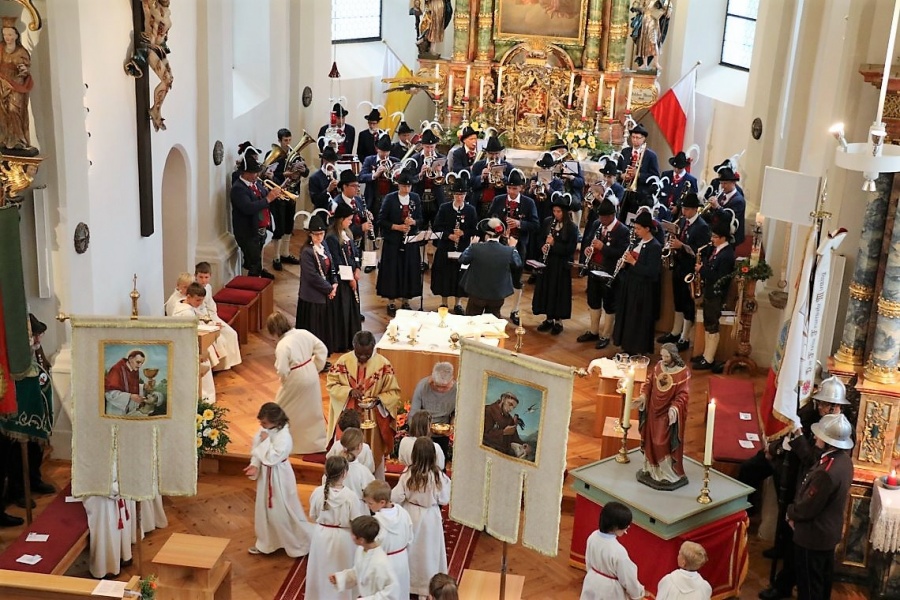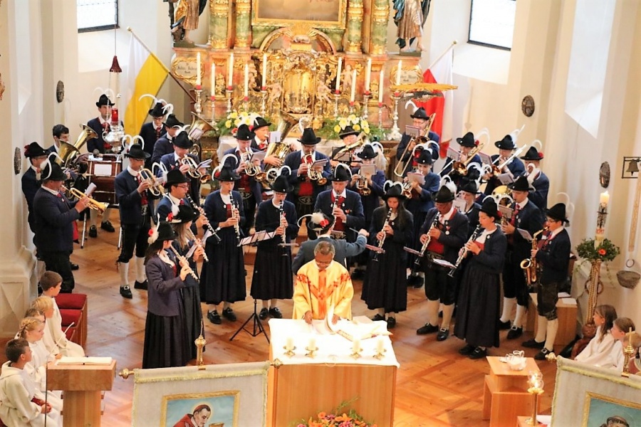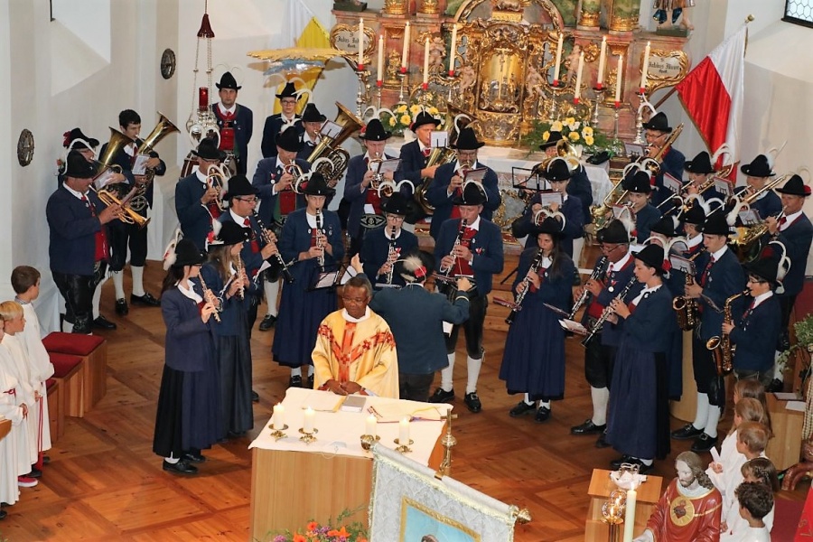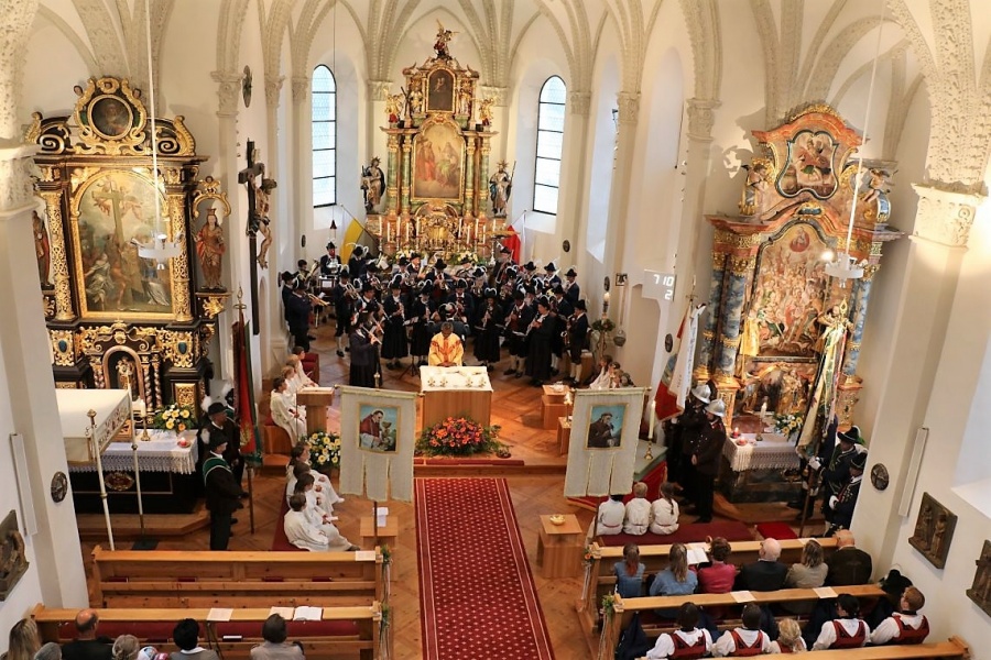 Für die Pfarrgemeinden in Mieming sei es auch in diesem Sinne eine „Herzensangelegenheit“ diesen Tag gemeinsam zu feiern. „Da machen alle mit“, lobte Paulinus. Unsere Vereine, die Dorfgemeinschaft und die Musikkapelle Mieming. Unter der Leitung ihres Kapellmeisters Sebastian Kluckner gestaltete die Musikkapelle den feierlichen Rahmen für den Gottesdienst. Unterstützt von den Fahnenträgern und Delegationen der Schützenkompanie, Freiwilligen Feuerwehr und der Schützengilde.