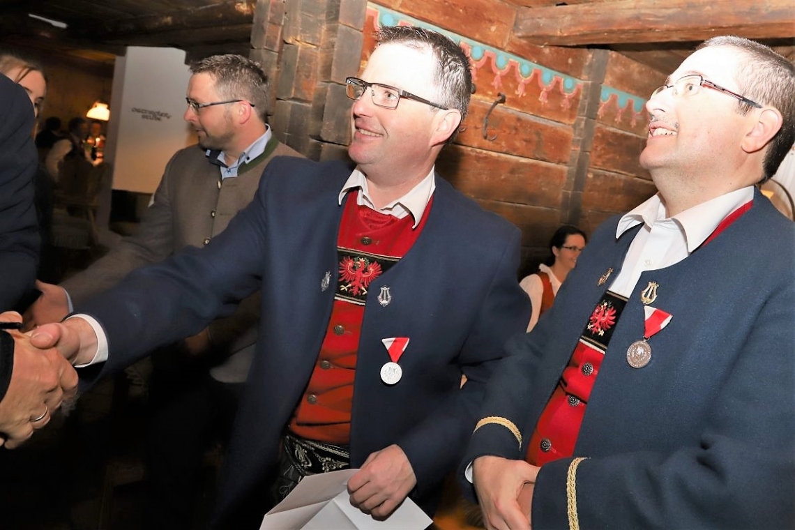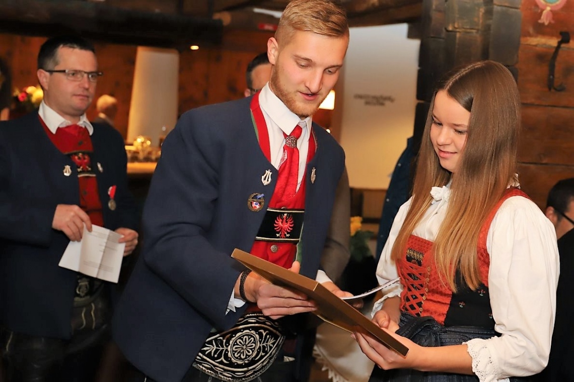 Zur Cäcilienfeier trafen sich die Mitglieder Musikkapelle Mieming mit geladenen Gästen im Gasthof „Moosalm“. Mit dem Musikantenbrief geehrt wurden dabei – neben Florian Schöpf – auch Maria Kleinhans und Franz Walch, die schon seit Sommer diesen Jahres der Musikkapelle Mieming angehören.